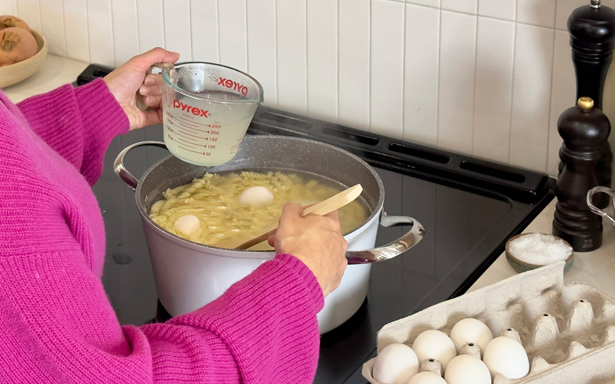 En tant que créatrice de recettes, Geneviève O’Gleman l’avoue tout de go : elle consomme beaucoup d’eau dans sa vie de tous les jours. « La cuisine, c’est mon métier, et j’ai donc eu envie de pousser plus loin ma réflexion afin de développer des astuces pour récupérer l’eau de cuisson, explique-t-elle. Je lui ai trouvé plusieurs nouvelles utilités : arroser mes plantes, étirer des sauces, diluer du pesto, cuire du riz, gonfler un couscous, faire tremper une casserole sale et même ébouillanter les mauvaises herbes qui poussent sur mon terrain en été! » Un truc infaillible qu’elle utilise souvent : maximiser l’utilisation de l’eau bouillante, par exemple en faisant cuire dans le même chaudron, au même moment, des pâtes et des légumes ou des œufs durs.