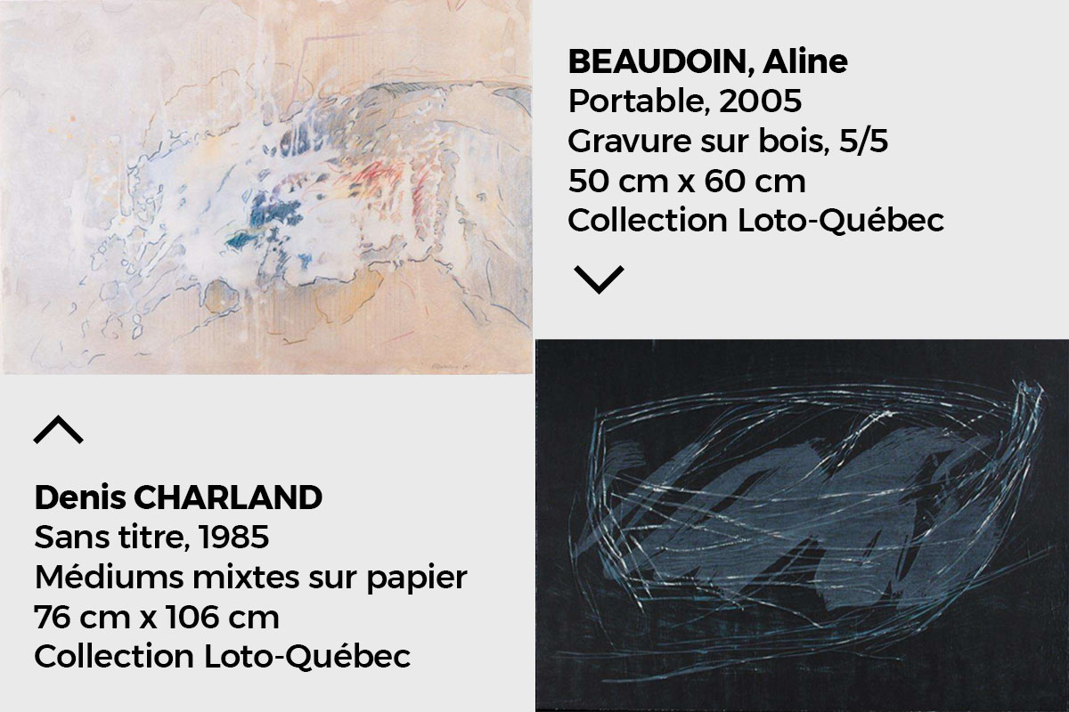 Dans ce contexte fertile, on ne s’étonne pas que la Collection Loto-Québec contienne près de 2000 estampes. Certaines sont signées par des artistes renommés comme Guido Molinari, Jean Paul Riopelle, Marcelle Ferron et Bonnie Baxter. On y trouve aussi des œuvres d’artistes originaires de Trois-Rivières, tels Jo Ann Lanneville, Guy Langevin et Aline Beaudoin.