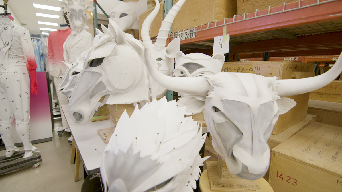 L’utilisation d’un polyester extensible, qui conserve bien les plis, a permis de concevoir des costumes spectaculaires, qui respectent les paramètres importants d’un costume du Cirque du Soleil : le confort pour les artistes, qui doivent pouvoir bouger aisément, la durabilité, pour tenir huit à dix spectacles par semaine, et la sécurité. Ces critères ont aussi été appliqués lors de la conceptualisation des têtes d’animaux que porteront les artistes.