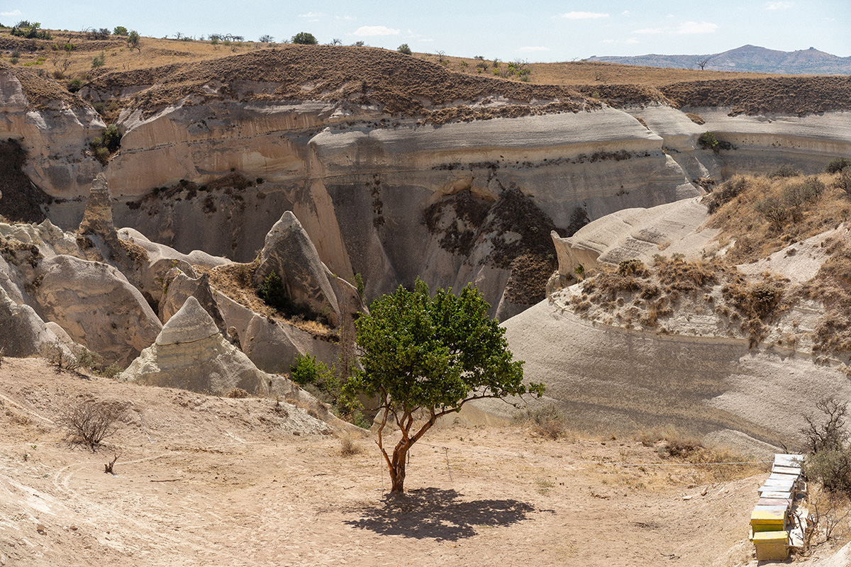Charlotte Ghomeshi a entrepris un voyage vers l’Iran pour accompagner son grand-père dans ses derniers moments. Elle en a tiré la photographie d’un arbre foisonnant dans un paysage aride, qui symbolise les émotions qui l’habitaient à ce moment-là.
